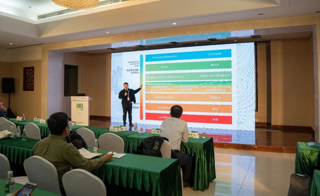 11月13日,在W105館舉辦的垃圾處理設施的建設和運行論壇上,蘇州嘉諾設計研究院副院長嚴崢圍繞建筑裝修垃圾、廚余垃圾及可回收垃等熱門話題,以頂層政策為引導,以商業模式為主體,以實操項目為依據,闡述了垃圾分類大趨勢下,需以協同處置的理念,與上下游客戶積極共同構建環衛行業發展的新格局。